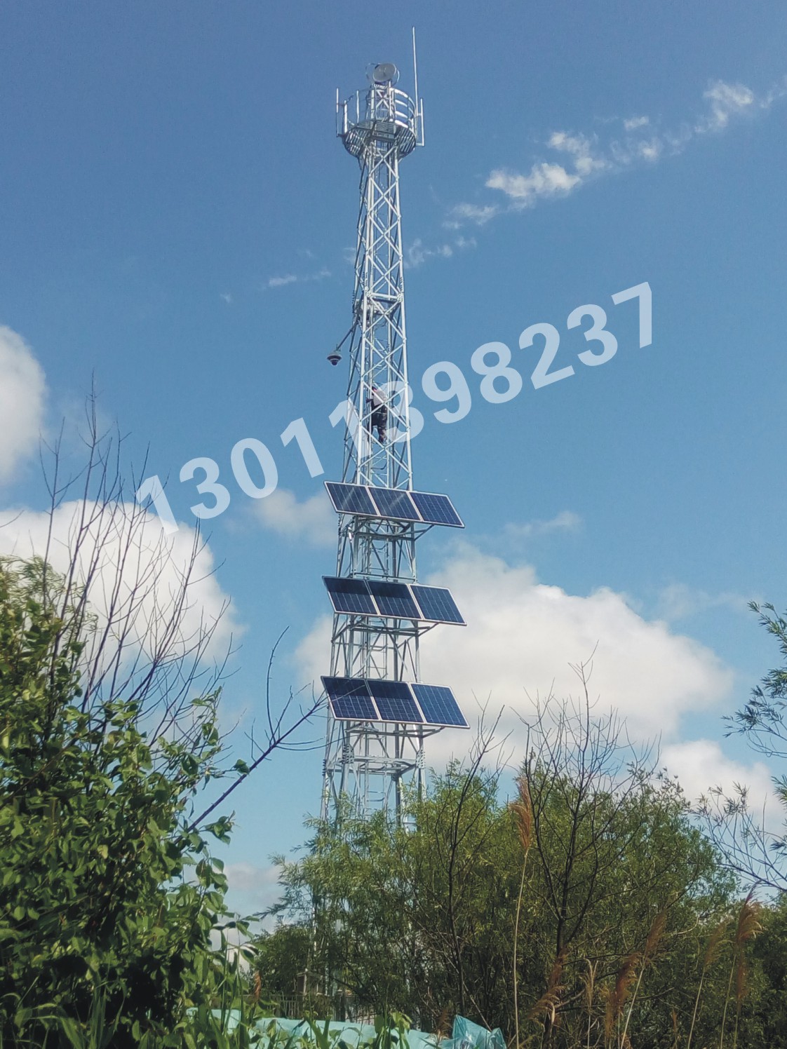 監控塔主要用于安裝前端視頻采集設備、無線傳輸設備及風光供電設備,主要應用單位為國家邊海防委員會、林草局、公安、水利、海監海事等部門。該塔為通信塔應用的分支塔型。該塔保留了通信鐵塔原有配置的基礎上增加了前端視頻采集設備對接接口、網絡通信設備接口及供電系統對接接口。以滿足該塔功能擴展的實際使用需求。角鋼塔它制作安裝簡便,單件重量較輕、生產方面自動化程度較高、出廠狀態為單件角鋼、運輸方面不受使用地點環境限制,故此相對成本較低,應是鐵塔建設的******。建設于屋頂的鐵塔首先應考慮建筑承重問題,鐵塔設計選型時應充分考慮自重情況,在滿足當地基本風壓的情況下選擇自重較輕的塔型,減少建筑承重帶來的壓力。屋頂塔安裝時塔地基應選擇建筑承重柱、梁或者墻體上方,地腳螺栓與建筑內筋生根連接,混凝土選用C30,施工完畢做好屋頂防水。
